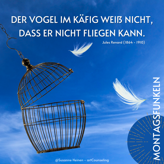 Der Vogel im Käfig weiẞ nicht, dass er nicht fliegen kann.
